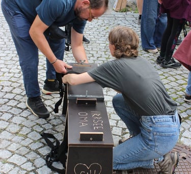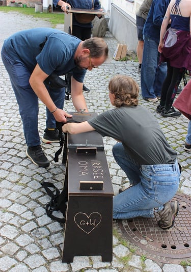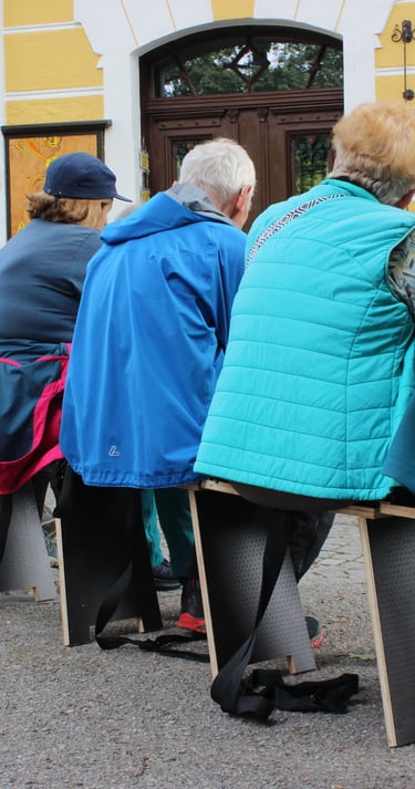 Wer kennt sie nicht - die Sonnenbank vor dem alten Bauernhaus. Ein Platz, an dem seit Generationen getratscht, beobachtet, diskutiert, geschwiegen, gelacht – und manchmal einfach nur in die Sonne geblinzelt wird. Sie ist Treffpunkt, Beobachter*innen-Loge und Zentrum unserer diesjährigen Sunnbeng-Roas. Und weil wir es gern praktisch mögen, tragen wir sie einfach mit – Stück für Stück, gemeinsam. Weil Austausch nicht am Gartenzaun endet und weil auf der Sunnbeng immer noch ein jeder und jede Platz gefunden haben - auch du!
